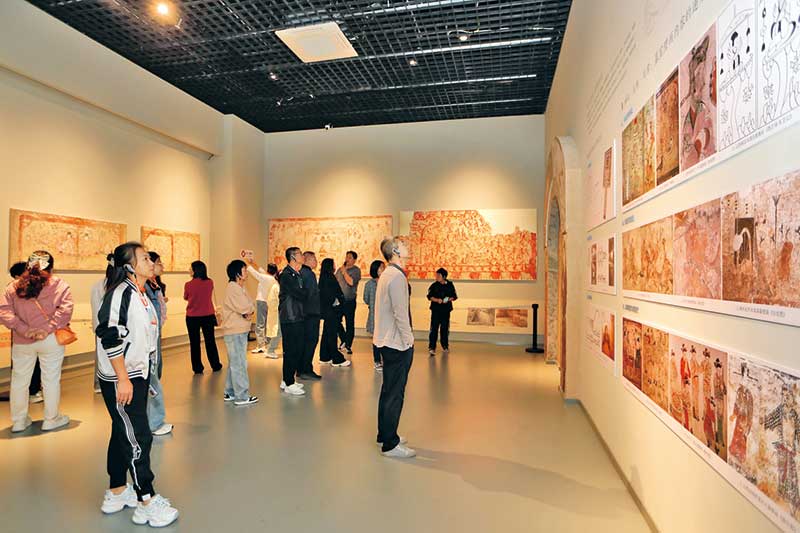 市民在山西晉之源壁畫藝術博物館參觀